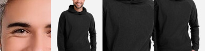 - Three-panel hood with two-tone, textured drawcord