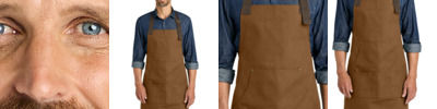 Craftsman styling creates a signature look in this apron that¿s perfect for bistros, pubs, cooking classes and more. The wrinkle-resistant fabric has a denim-like look which blends performance with style to make a sophisticated statement. 7-ounce, 60/40 cotton/poly yarn-dyed twill Adjustable contrast webbing neck strap with antique-finish metal slider Patch pocket, pen pocket Self-fabric waist ties Contrast stitch details Measures: 25'w x 34.5'l